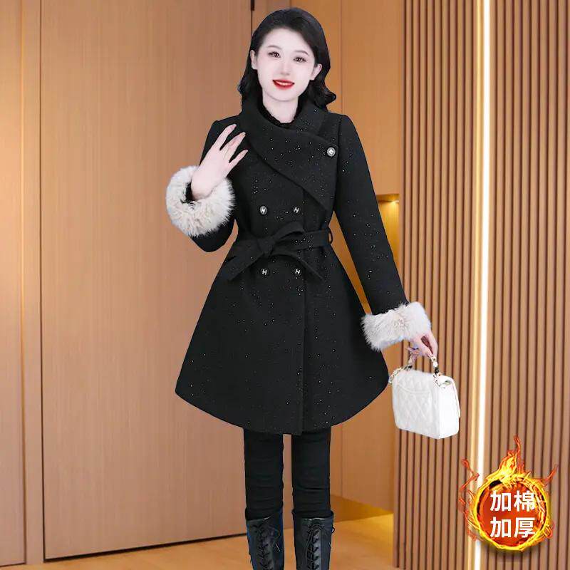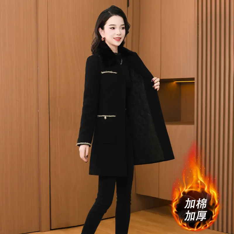 - 中长款显瘦毛呢大衣女