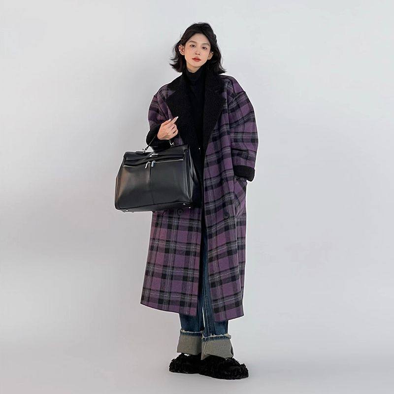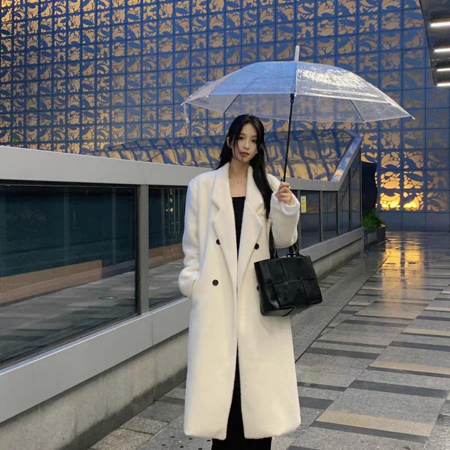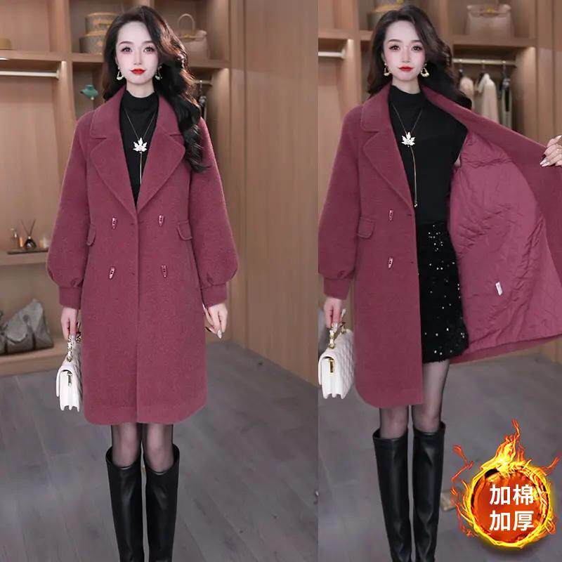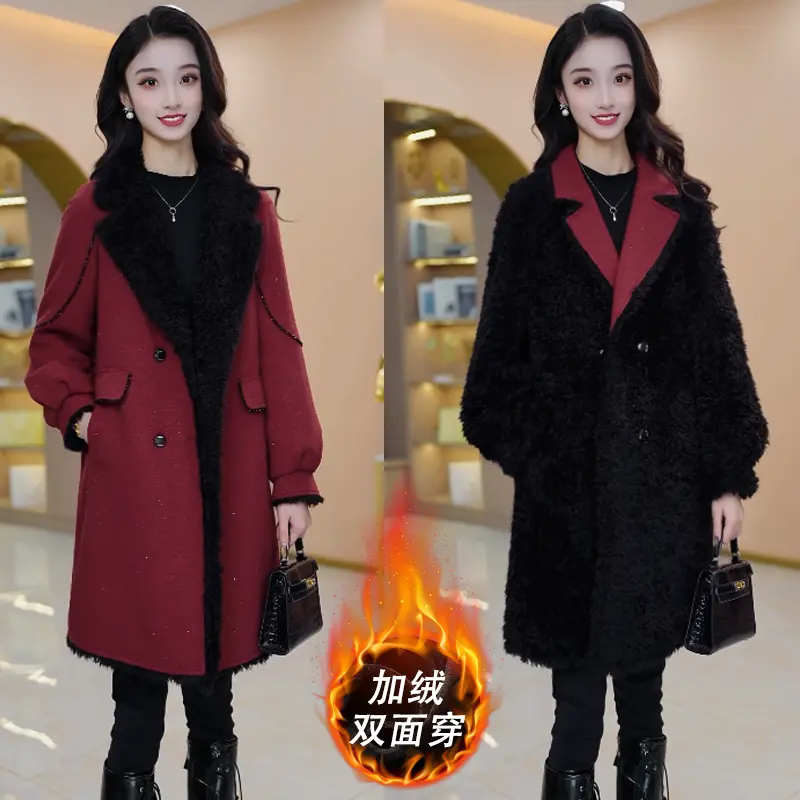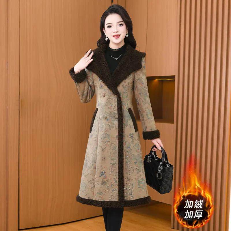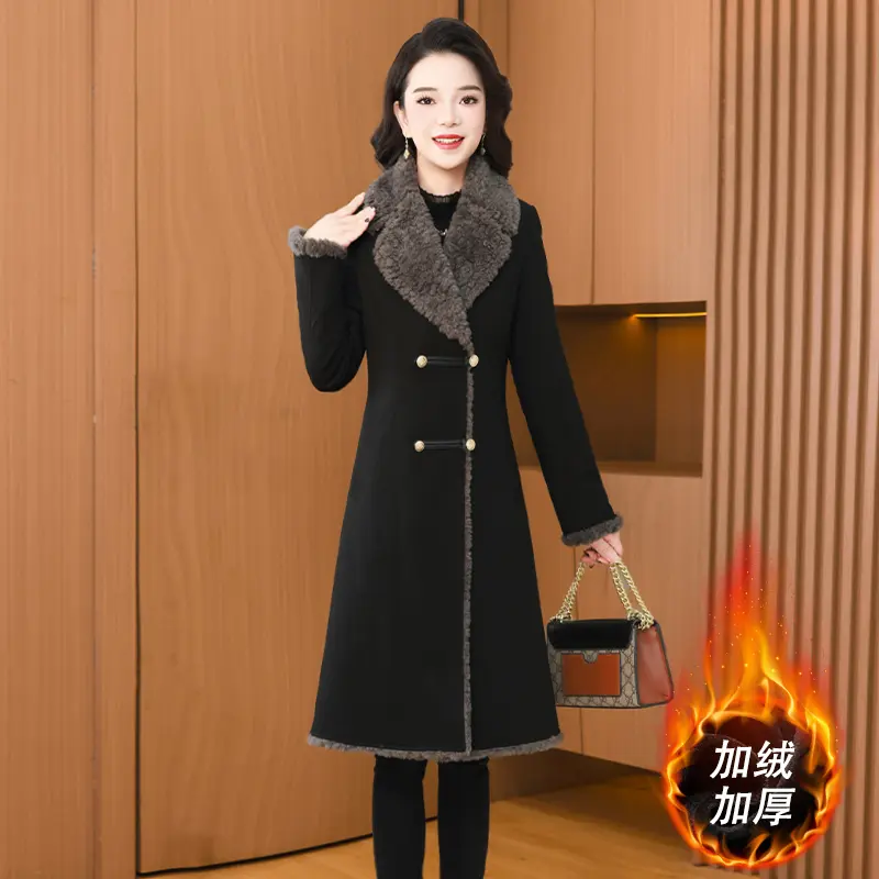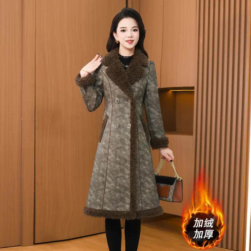 - 羊羔毛鹿皮绒外套女款中长款