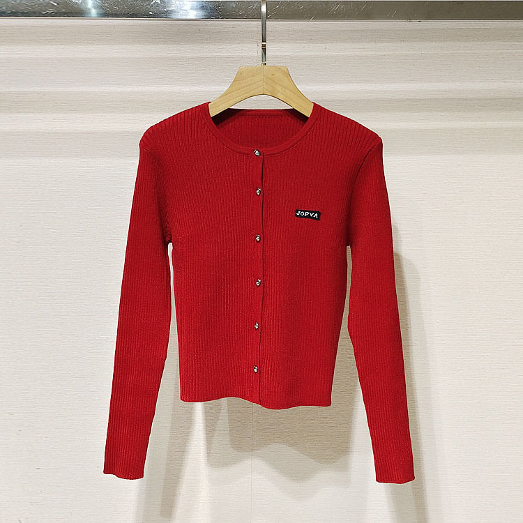 深圳南油2026春女装XSJ1M13C新年红圆领单排扣针织开衫S260044