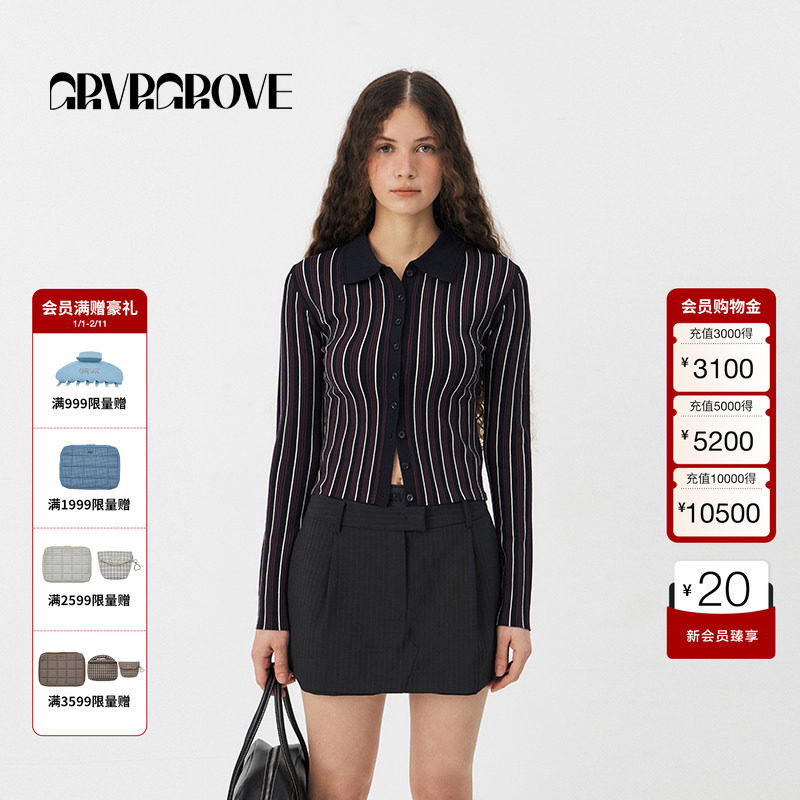 GROVE官方旗舰店2025PS春季款明星同款条纹针织开衫女GS5KN13C