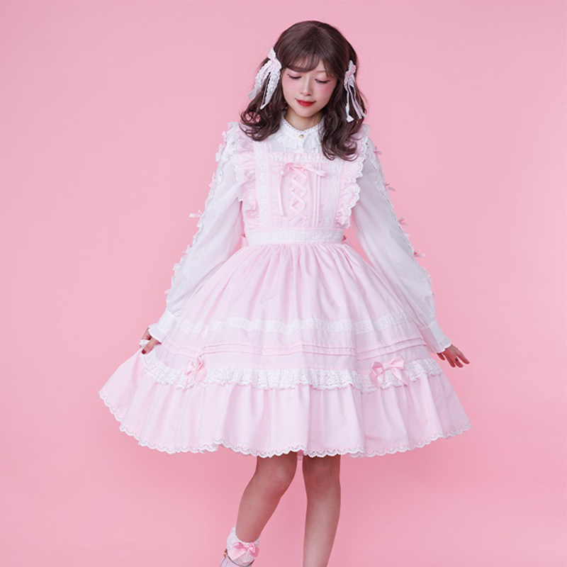 axesfemme日系活泼快乐荷叶边蕾丝背心裙jsk蝴蝶结套装LD341X13C