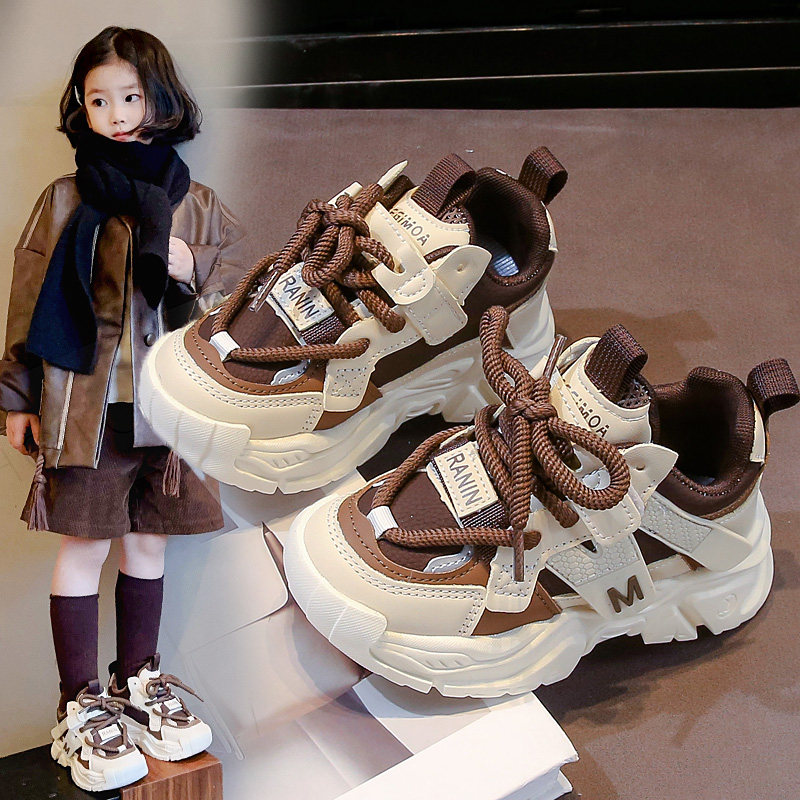 儿童网面运动鞋春秋季新款透气跑步鞋百搭学生老爹鞋男女童休闲鞋