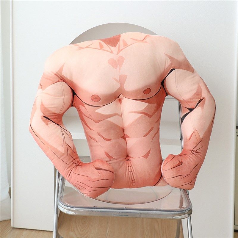 搞怪肌肉猛男腹肌抱枕靠垫男朋友公仔双面印花毛绒玩具有趣男礼物