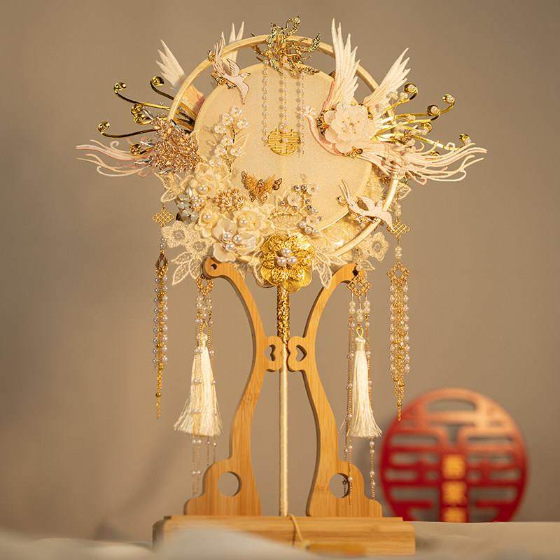 团扇新娘结婚喜扇成品新婚中式婚礼出嫁香槟色秀禾扇纯手工材料包