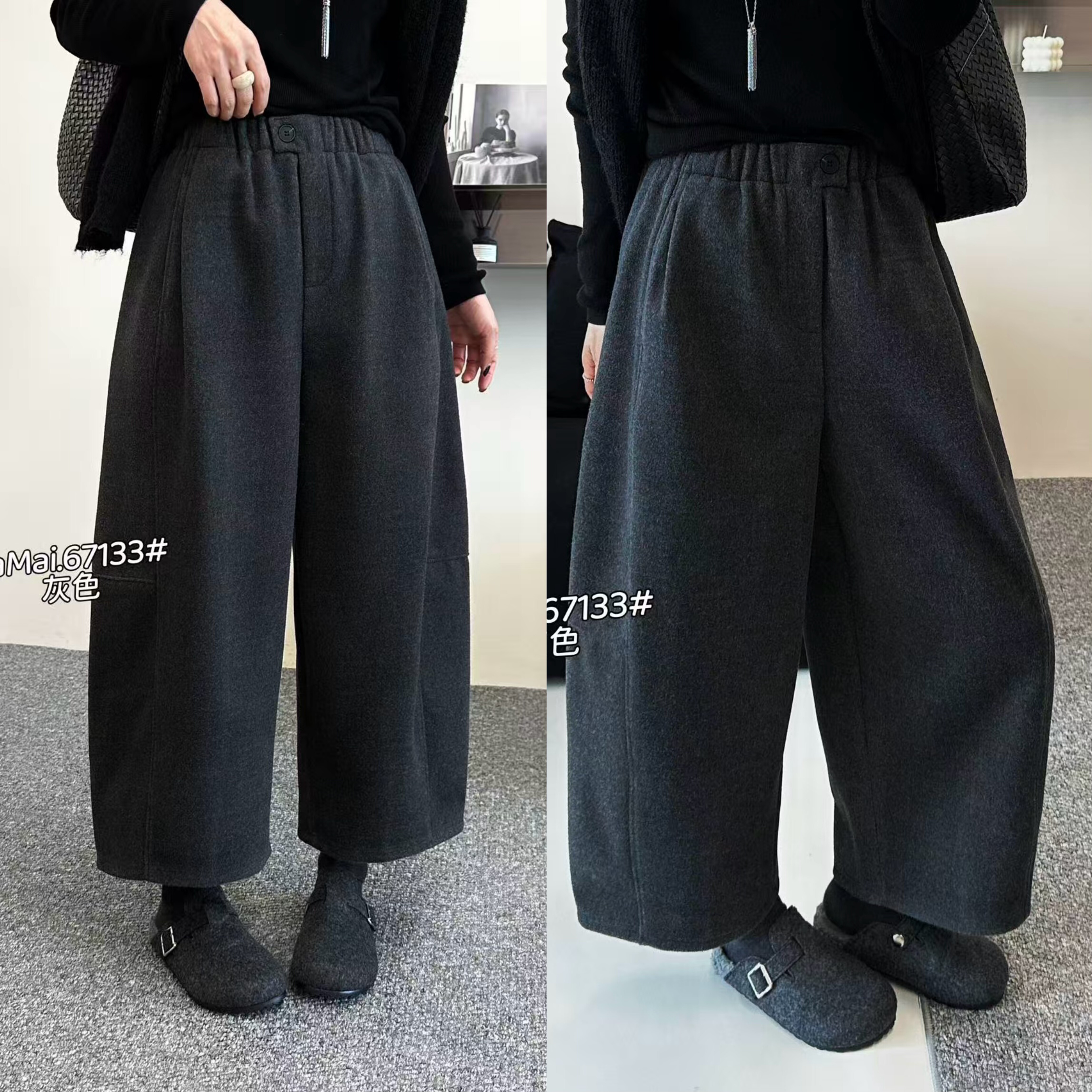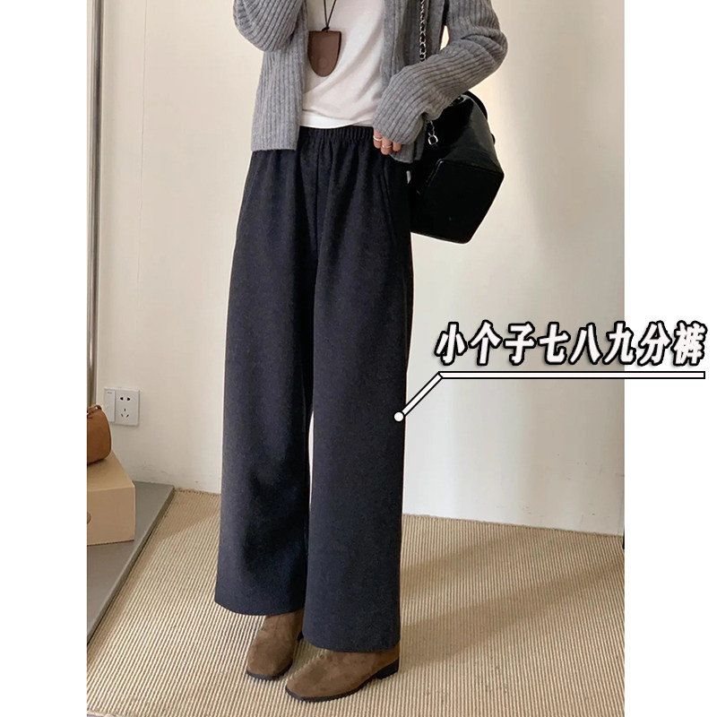 TE正品冬季韩版呢料软糯舒适厚款羊毛阔腿休闲裤女百搭显瘦九分裤