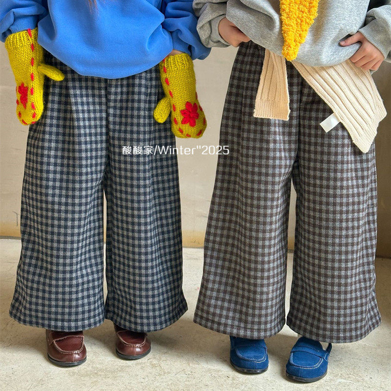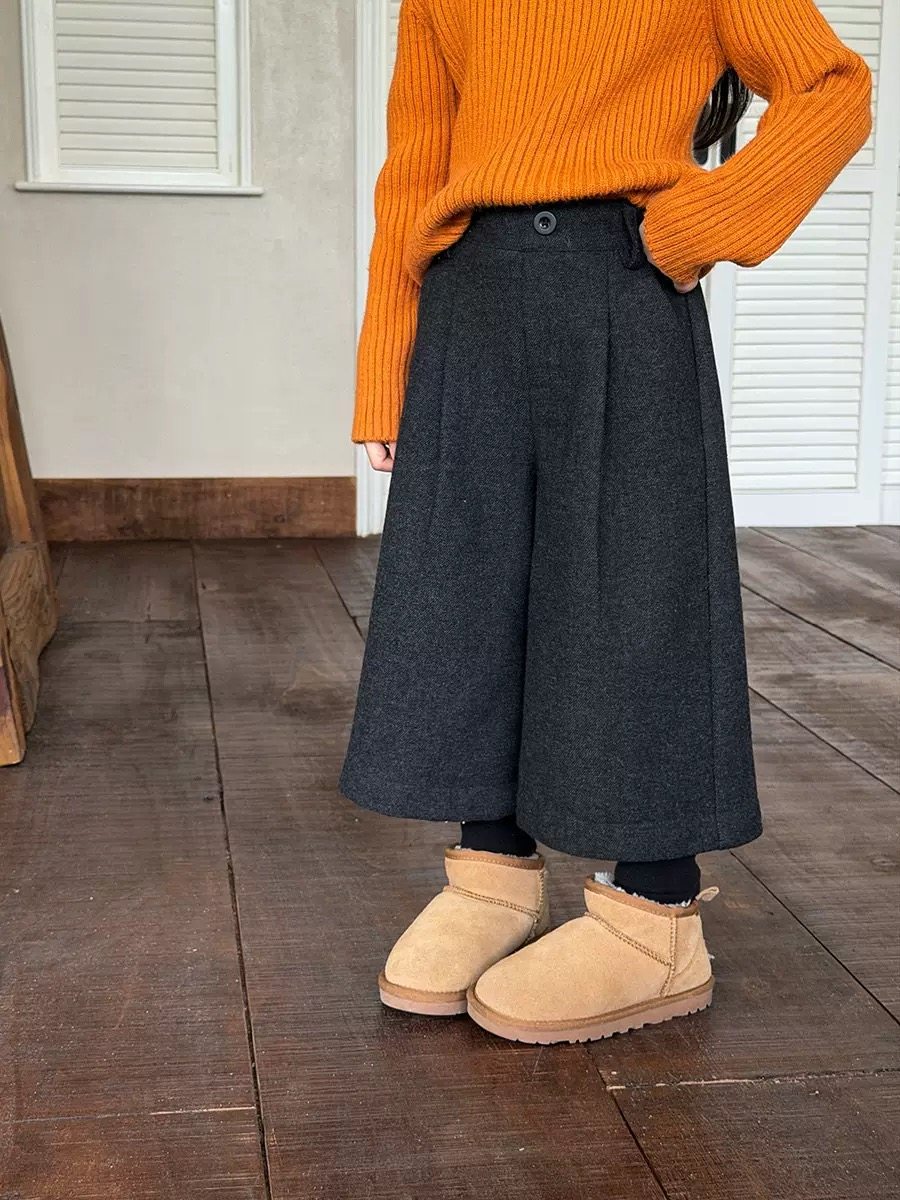 吉小可2025冬季新款儿童加绒加厚阔腿女童韩版假两件直筒九分裤