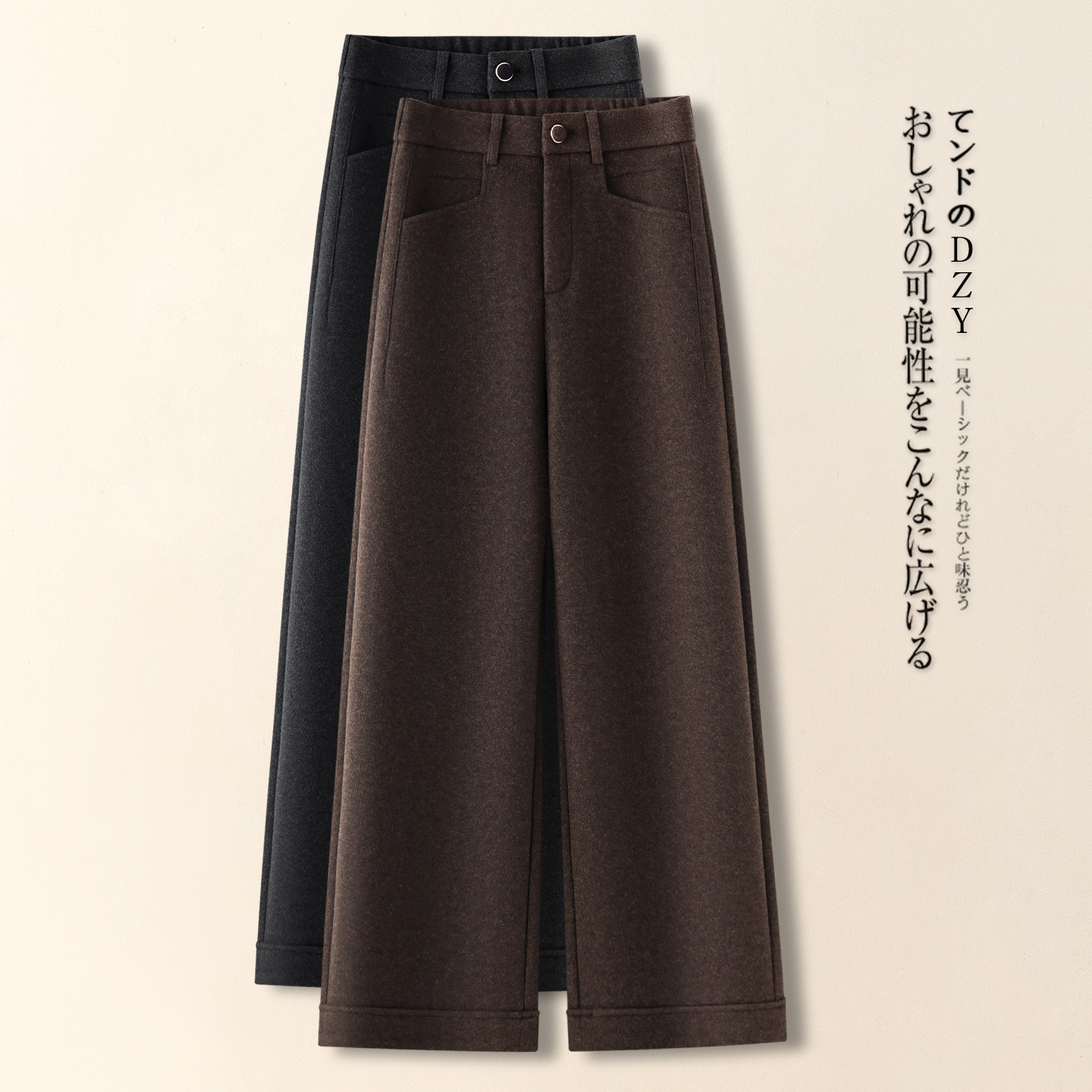 韩版咖色羊绒阔腿裤女秋冬季2025超火的裤子休闲九分羊毛呢直筒裤
