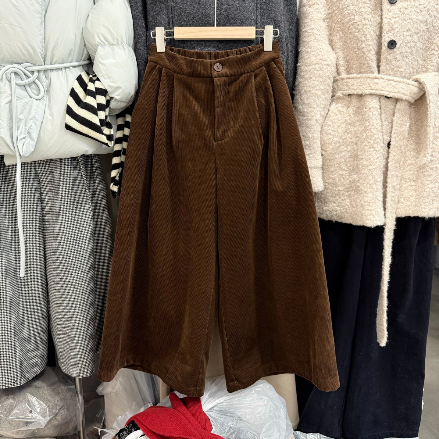 2025冬季新款韩版百搭显瘦灯芯绒休闲裤女设计感九分加绒阔腿裤