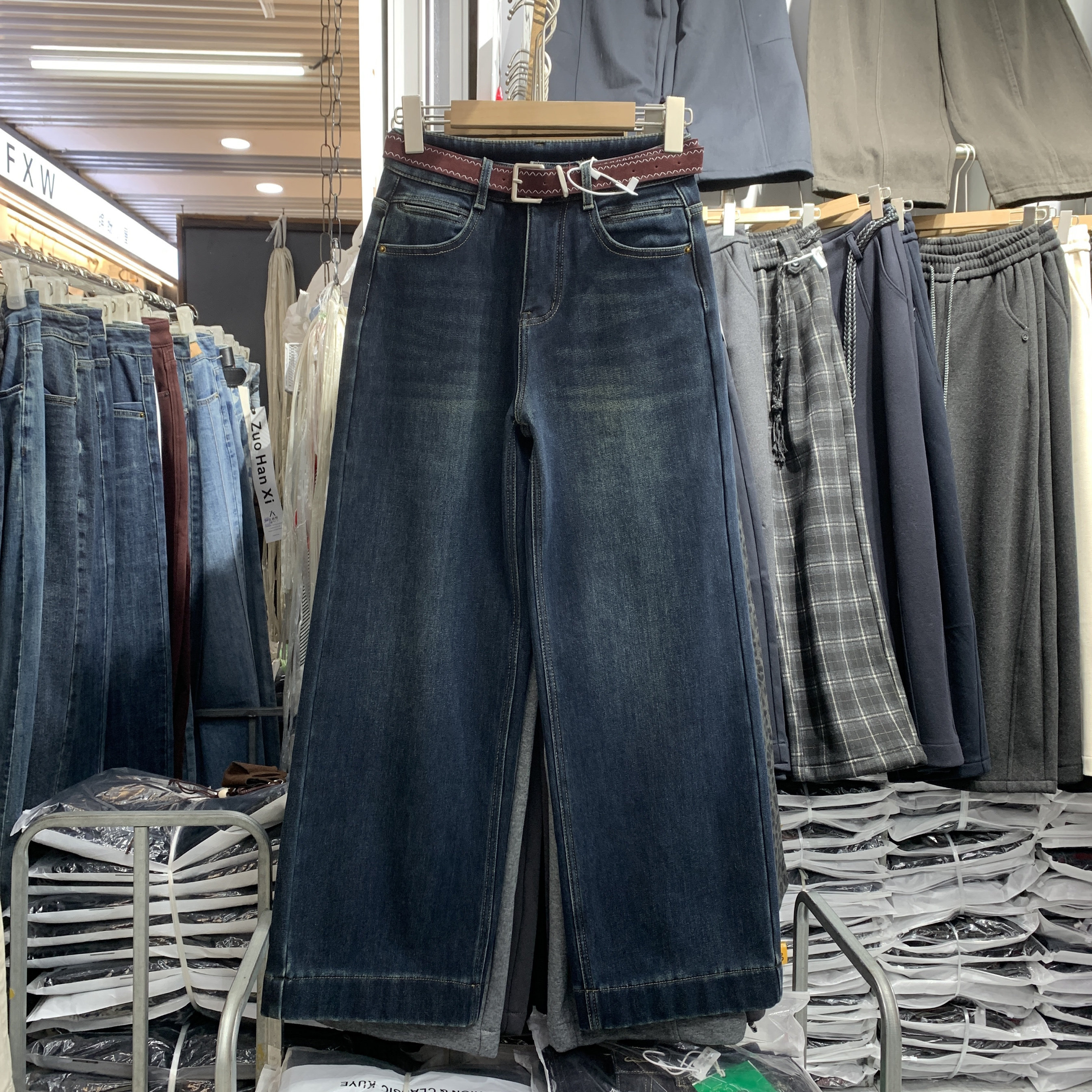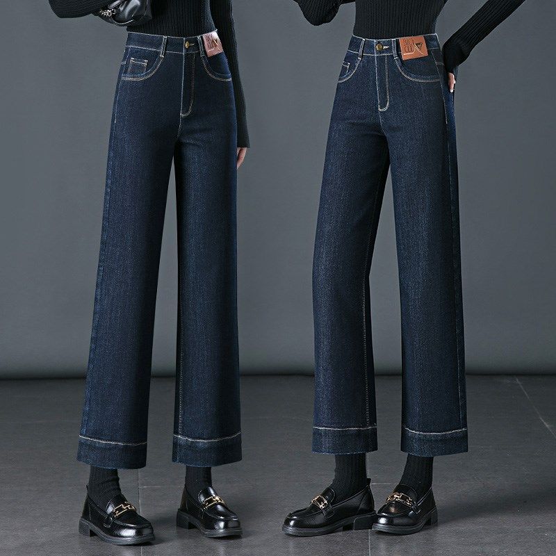 休闲风韩版加绒九分直筒牛仔裤女2025冬季新款垂感显瘦百搭阔腿裤