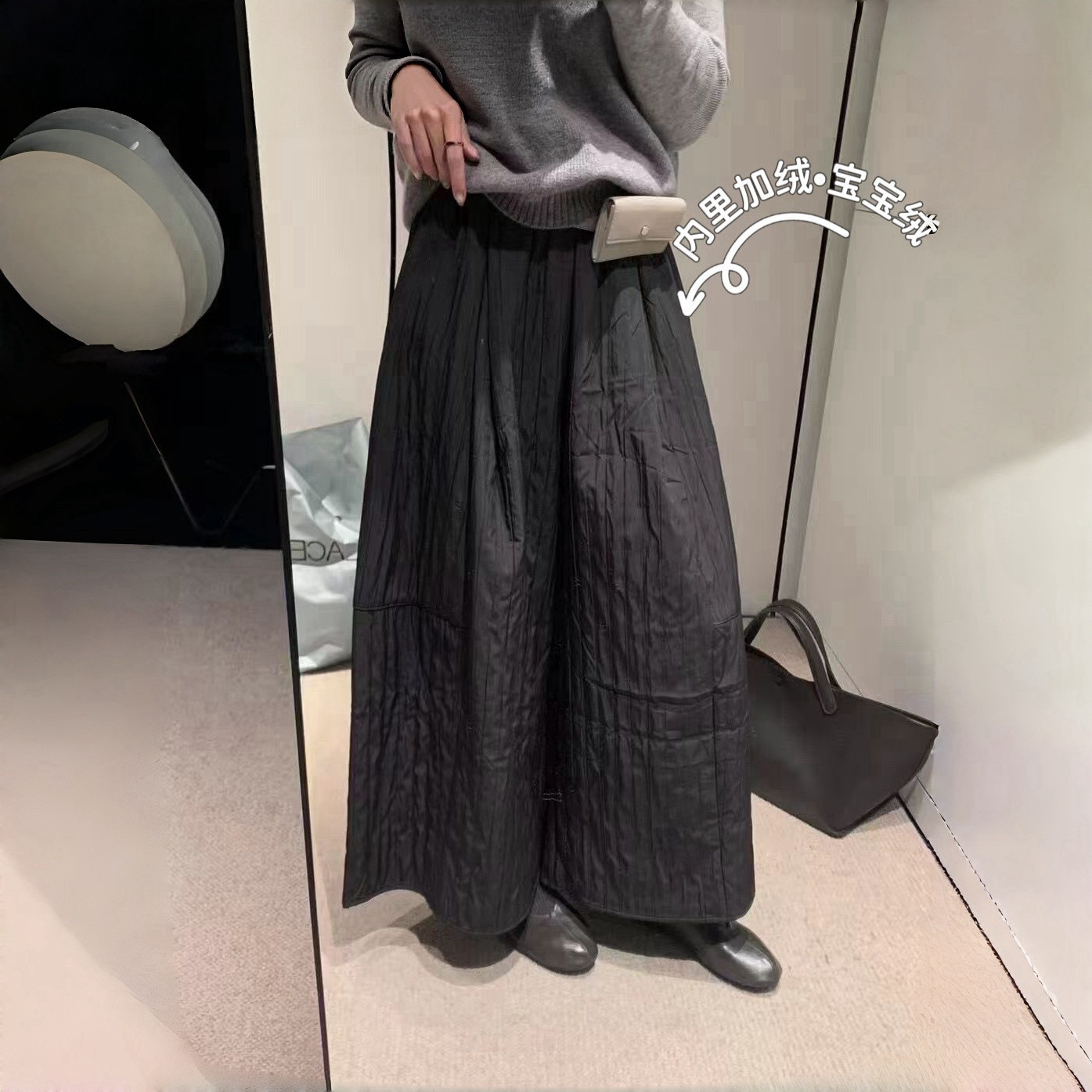 卡麦KAMAI67133正版冬季新款韩版加绒加厚阔腿九分休闲裤女梧桐裤