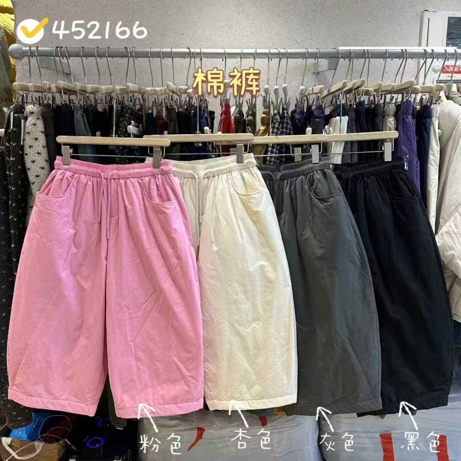 WE女451176冬季韩版宽松大码胖mm慵懒风高腰抽绳加厚阔腿九分棉裤