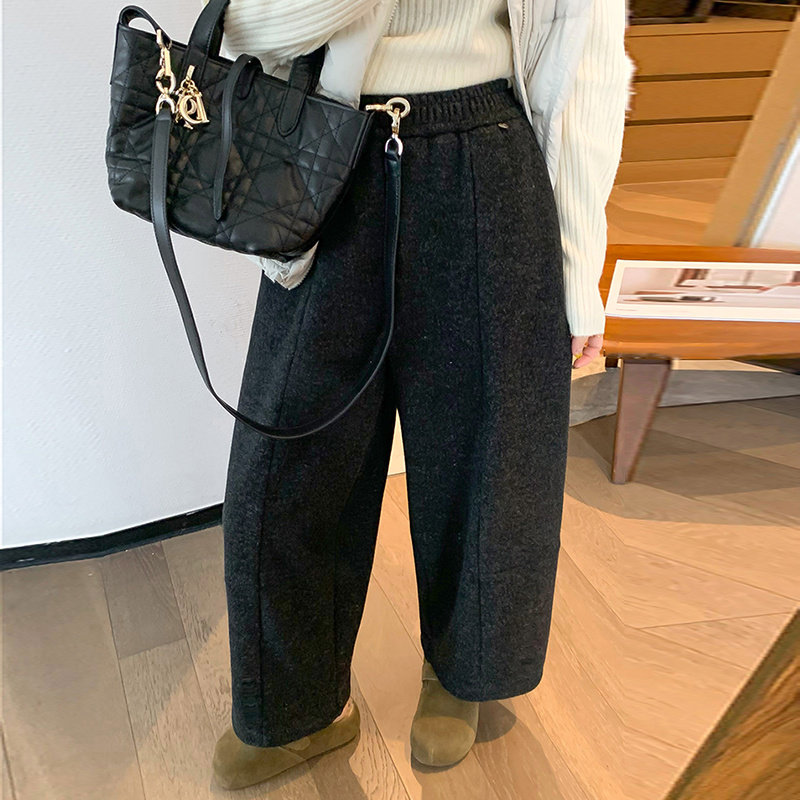 2025冬季新款韩版宽松百搭羊毛呢休闲裤女高腰直筒阔腿八九分裤潮
