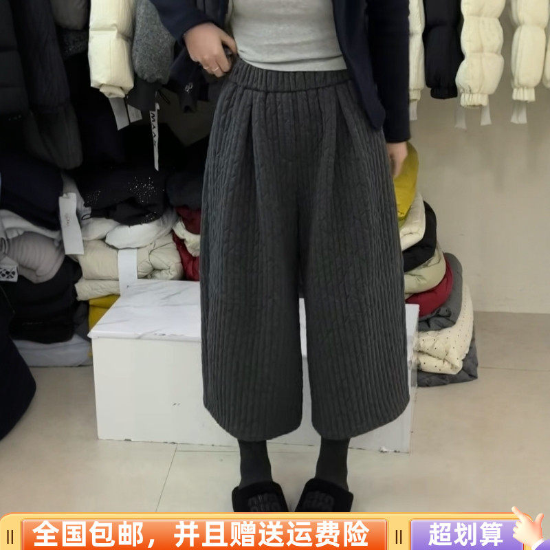2025冬季新款韩版宽松显瘦休闲裤夹棉加绒加厚高腰九分裤阔腿女潮