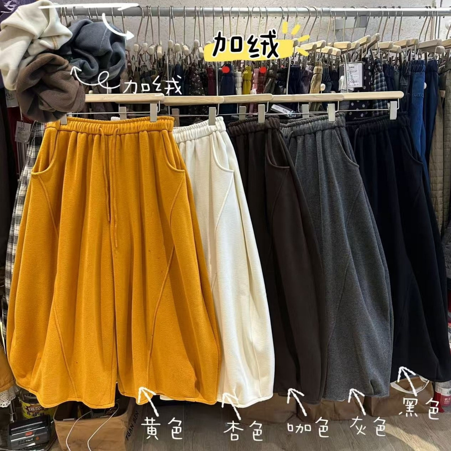 WE女452148冬季韩版宽松大码胖mm休闲高腰抽绳加厚加绒阔腿九分裤