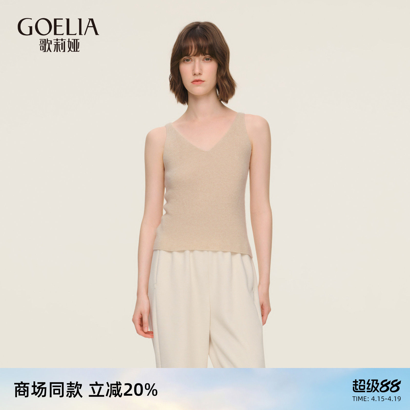 歌莉娅无缝羊绒吊带背心女2026新款春季穿搭V领无袖上衣1F1L5B420