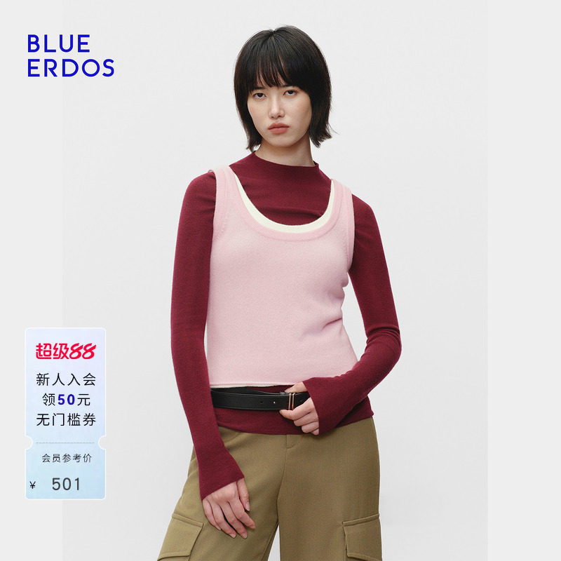 【零感羊绒】BLUE ERDOS春季新品羊毛羊绒修身多色圆领吊带背心