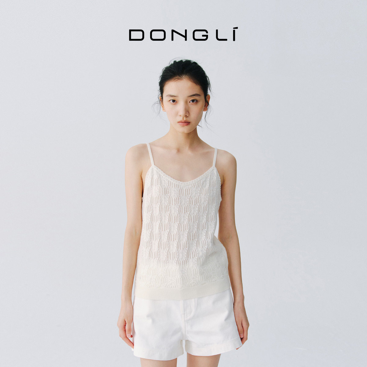 东黎万物复苏-珍珠吊兰 2026春女士山羊绒镂空针织吊带背心 6041