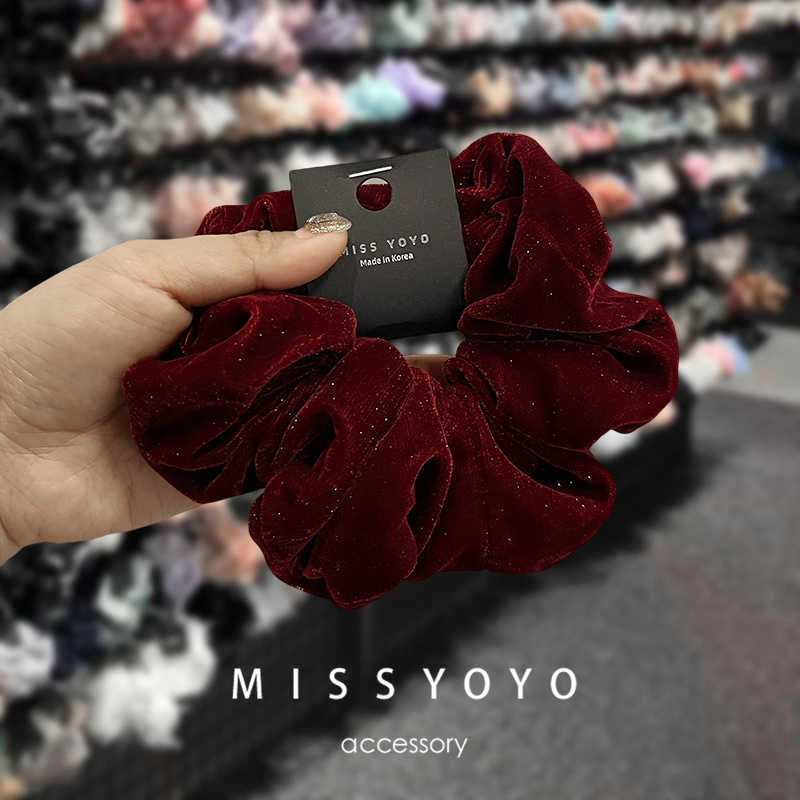 新年发饰韩国饰品发绳厚丝绒酒红头绳毛绒大肠发圈法式细闪高级感