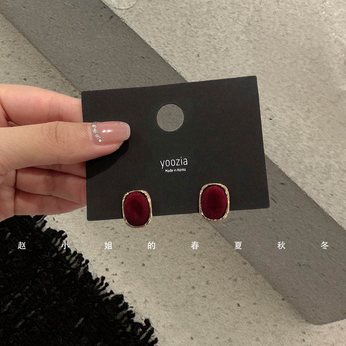 2025秋冬新款韩国饰品高级感复古耳饰耳环气质港风红色丝绒耳钉