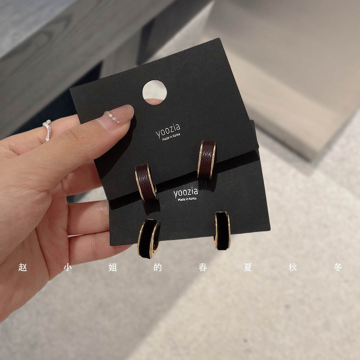 韩国饰品新款小众设计感耳饰耳钉复古高级感气质植绒皮质C形耳环