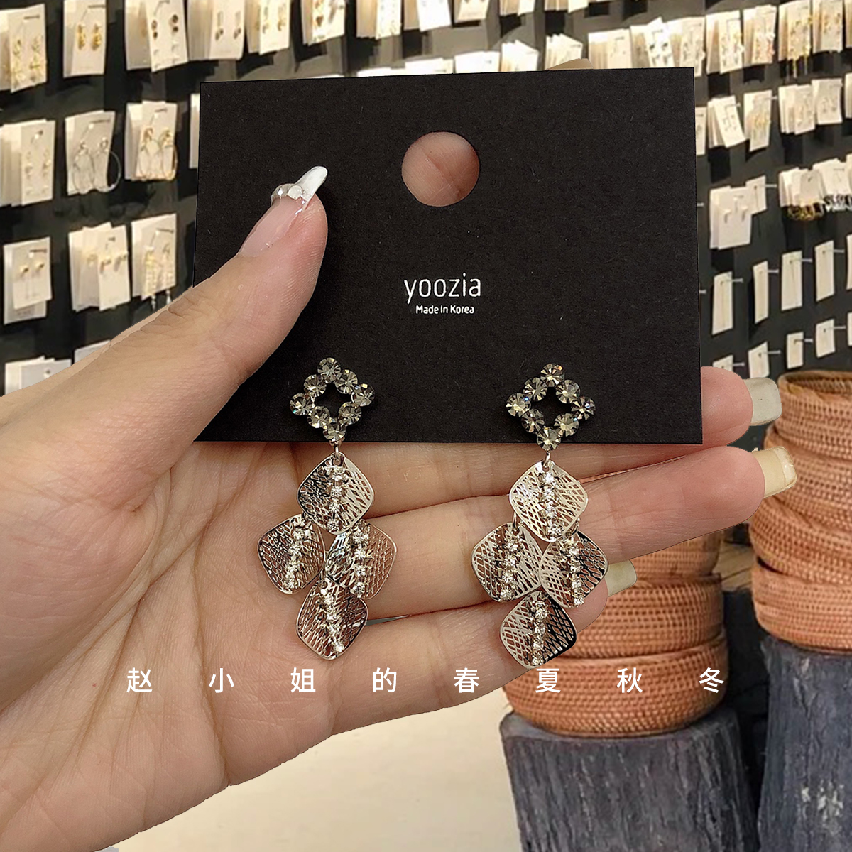 韩国饰品网红耳饰气质优雅耳钉2023新款日韩ins风流苏亮片耳环
