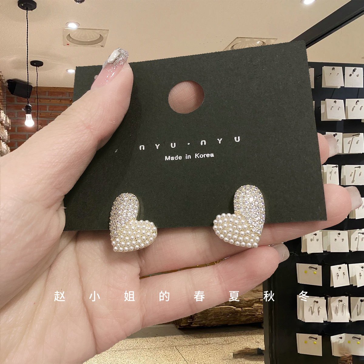 nyunyu韩国饰品东大门耳饰少女可爱新款耳环镶钻高级珍珠爱心耳钉