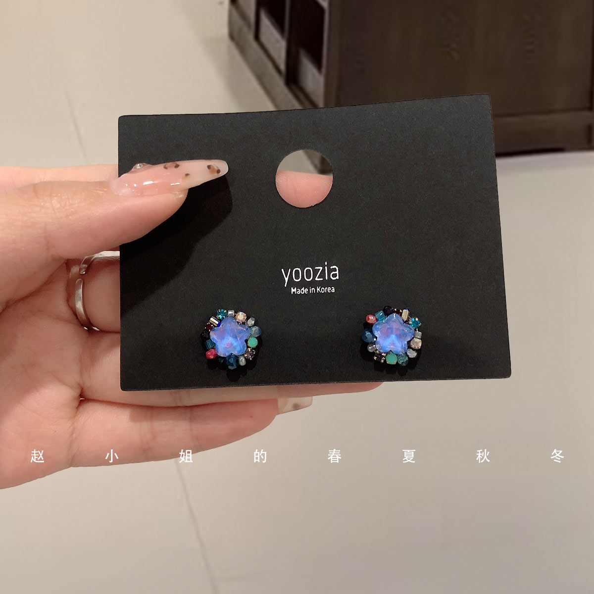 nyunyu韩国饰品东大门耳饰小众设计耳钉不对称镂空镶钻五角星耳环