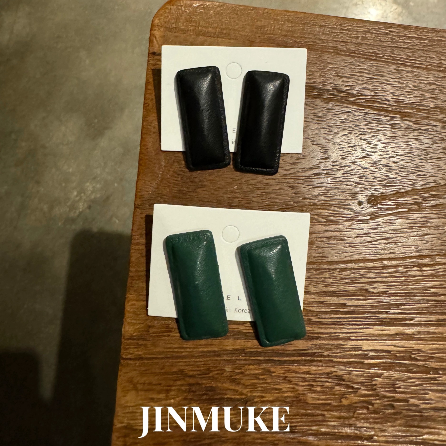 JINMUKE韩国饰品进口耳饰新品长方形纯色皮质简约时尚耳钉耳环新