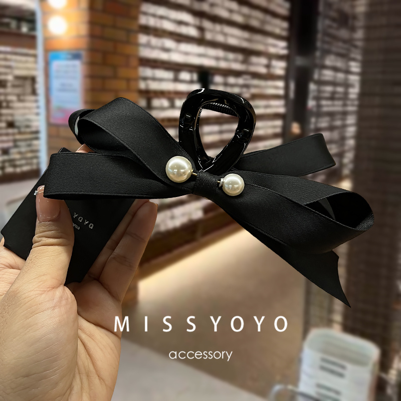 韩国饰品东大门发饰大号盘发黑色蝴蝶结飘带抓夹后脑勺发抓气质款