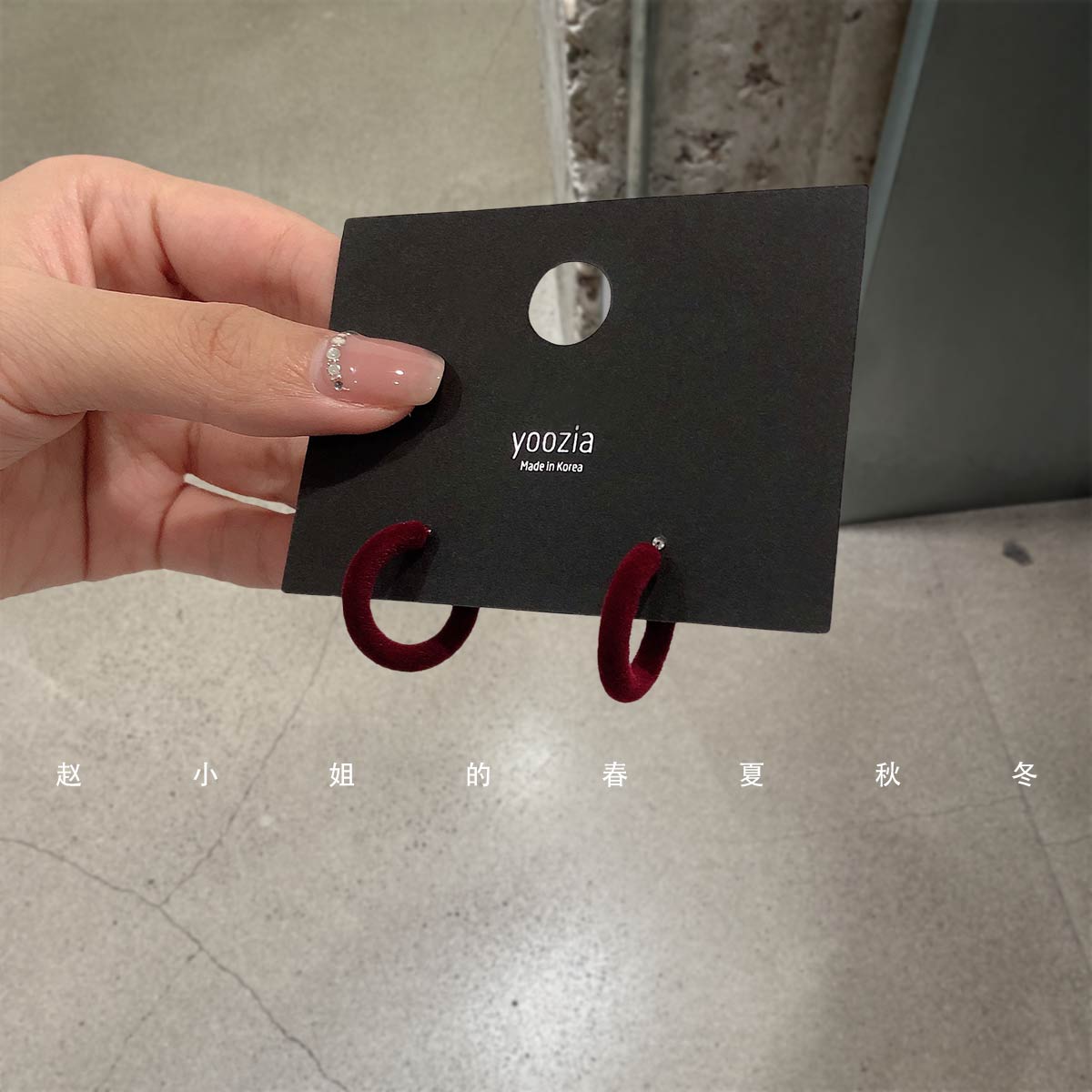 韩国饰品复古气质超显白耳饰耳钉2025秋冬新款酒红色圆圈植绒耳环