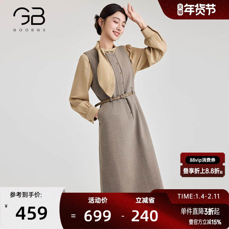 谷邦背心连衣裙2025春新款时尚气质小香风系带收腰中长款裙子