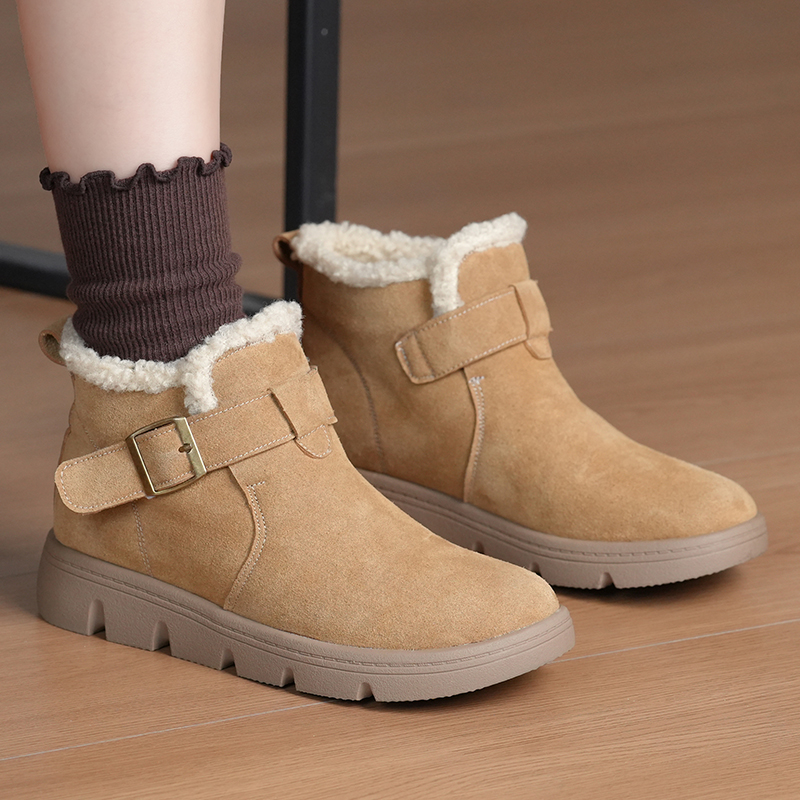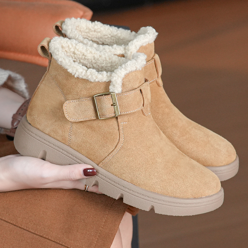 真皮大码女棉鞋41-43韩版磨砂皮雪地靴冬季加绒保暖防滑厚底短靴
