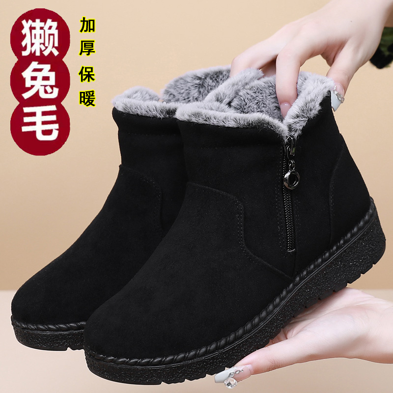 老北京布鞋女2025冬季新款加绒加绒大码女棉鞋防滑雪地靴中年女鞋