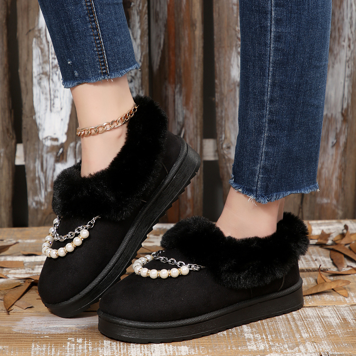 外贸大码女棉鞋雪地靴2025冬季外穿圆头深口一字串珠加绒加厚棉鞋