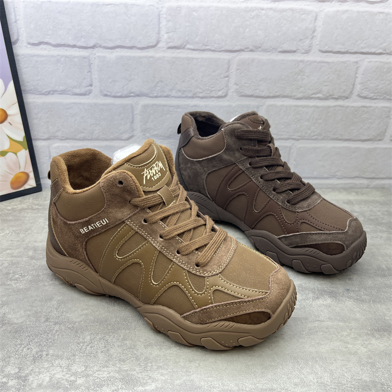 撤柜处理折扣真皮女鞋2025冬新款时尚运动休闲高帮保暖大码女棉鞋