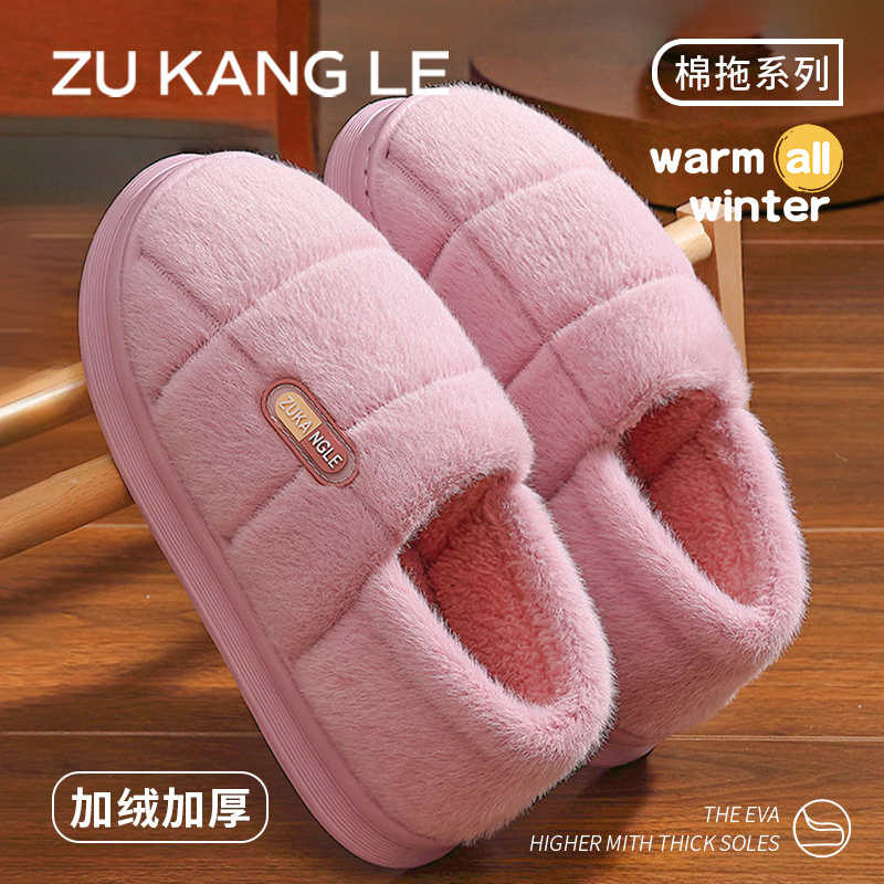 棉拖鞋男士冬季室内家居防滑保暖厚底家用情侣新款女毛毛棉鞋大码