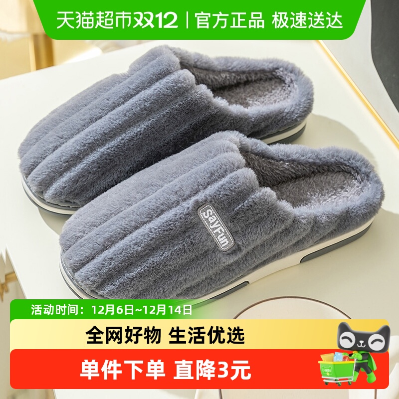洁丽雅大码棉拖鞋男士秋冬室内居家保暖情侣简约毛绒棉鞋女款冬季