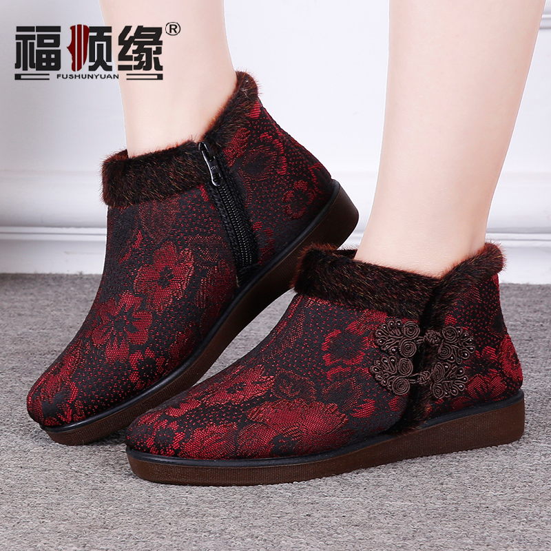 福顺缘冬老北京布鞋加厚保暖软底防滑中老年妈妈鞋宽松大码女棉鞋