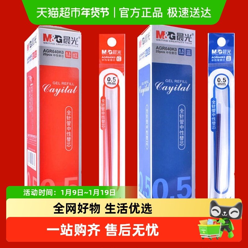正品官方旗舰店晨光中性笔芯按动替芯按动笔芯中性笔G-5子弹头笔芯黑色0.5mm圆珠笔芯按动笔替芯红色蓝色笔芯