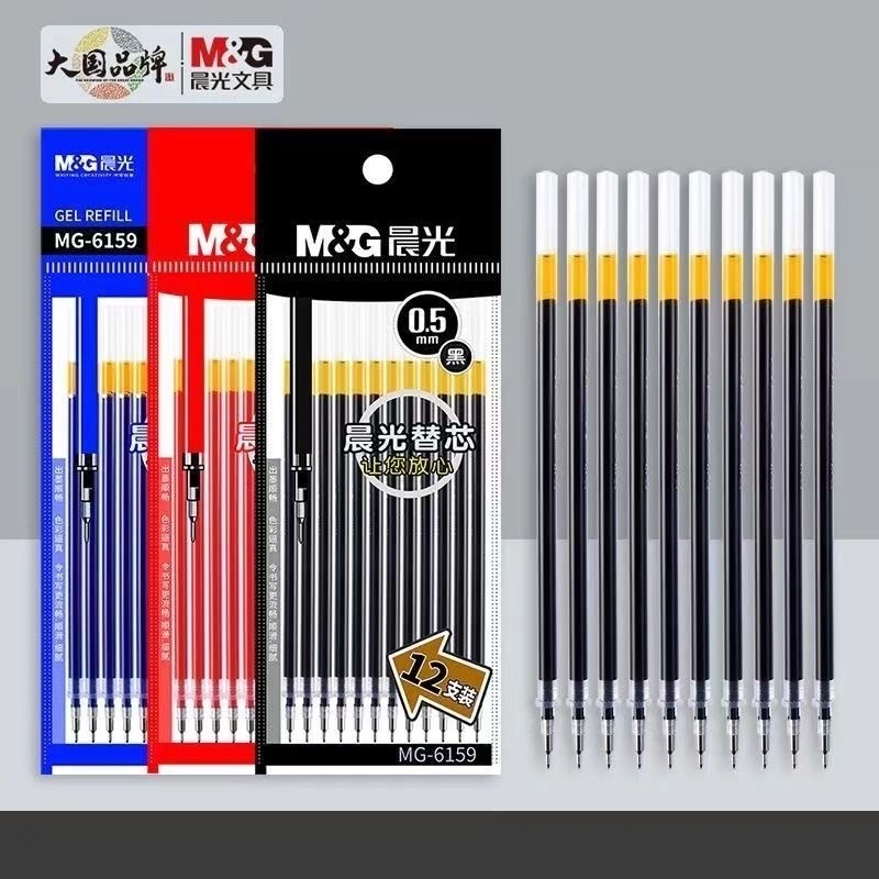 晨光中性笔芯MG-6159学生文具0.5黑色葫芦头黑笔芯红笔芯蓝袋装拨盖笔通用蓝色替芯签字笔芯红色半针管替换芯