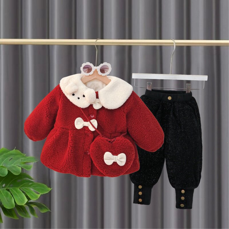 女童毛毛衣外套毛绒新款羊羔保暖儿童宝宝加厚童装棉服时尚套装潮