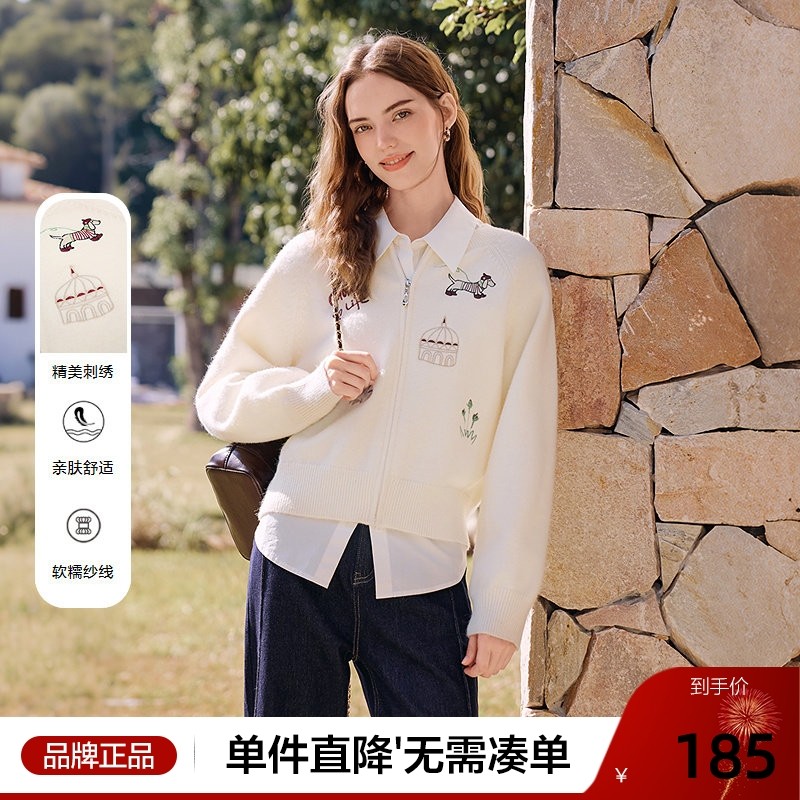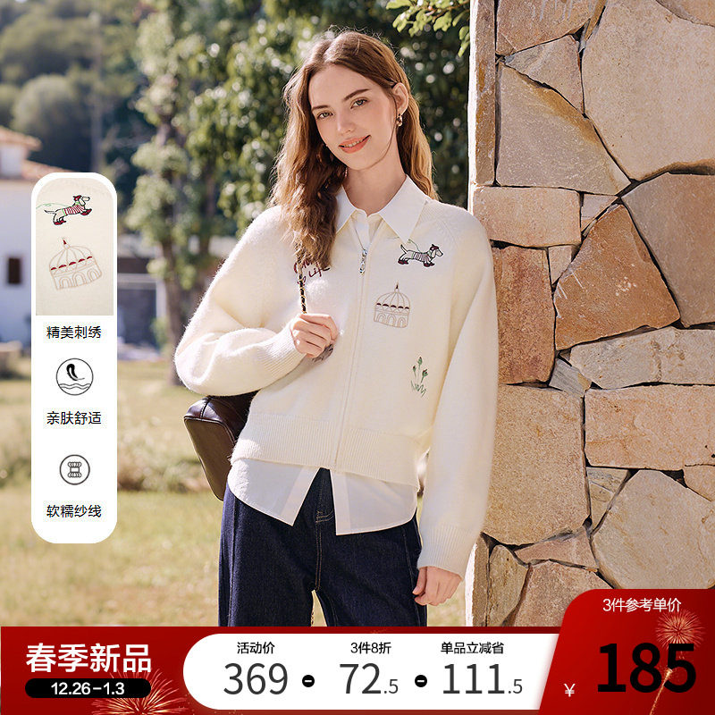 [新品]百图洋气减龄刺绣针织开衫女2026年春季新款童趣风毛衣外套