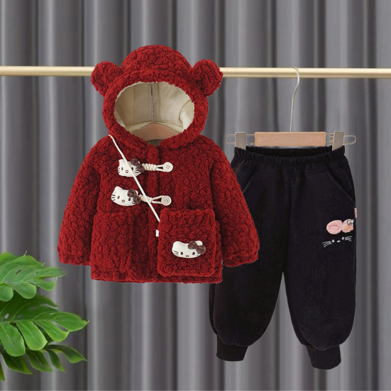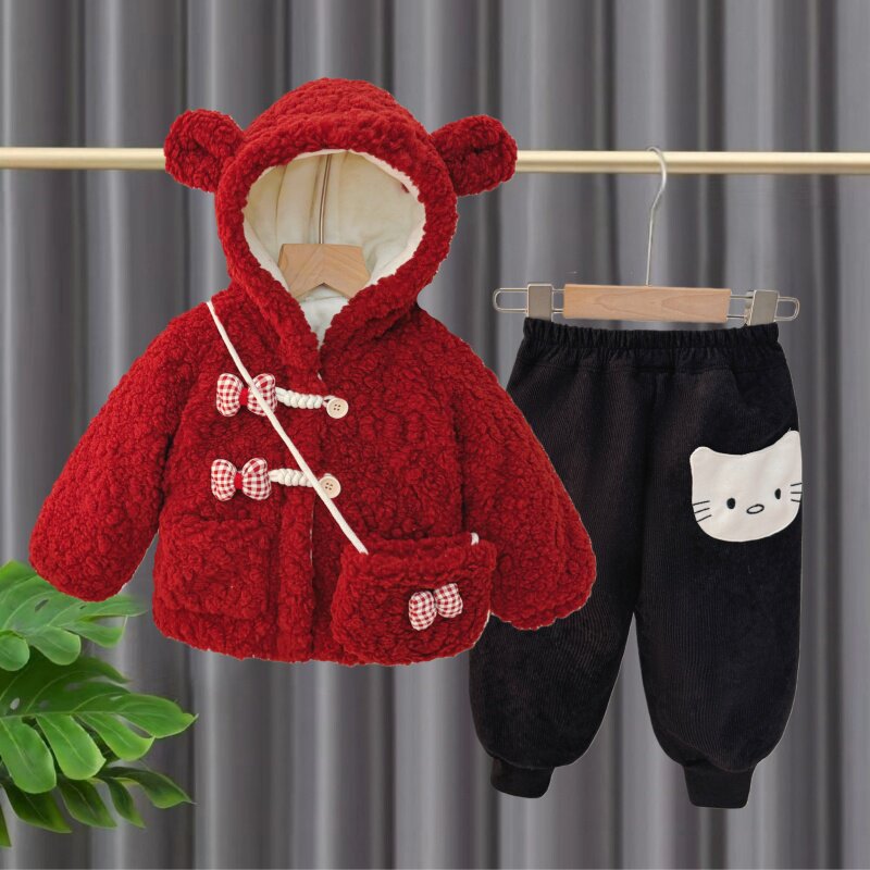 宝宝棉衣2026冬季新款女童加厚棉服套装婴儿童毛毛衣保暖加绒外套