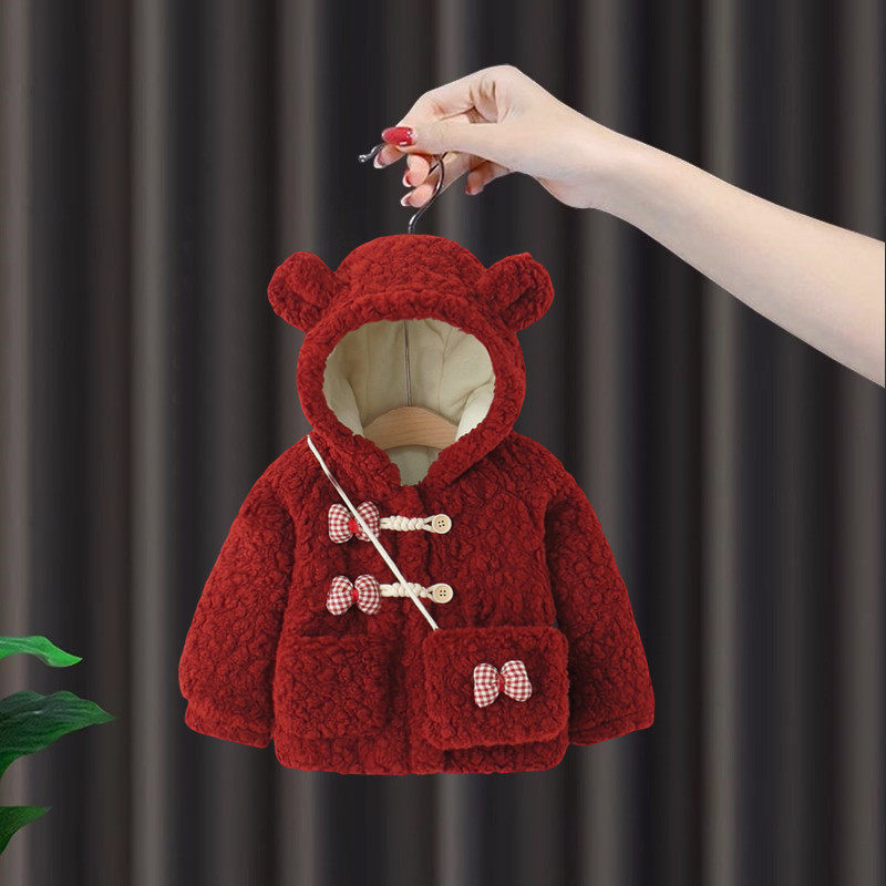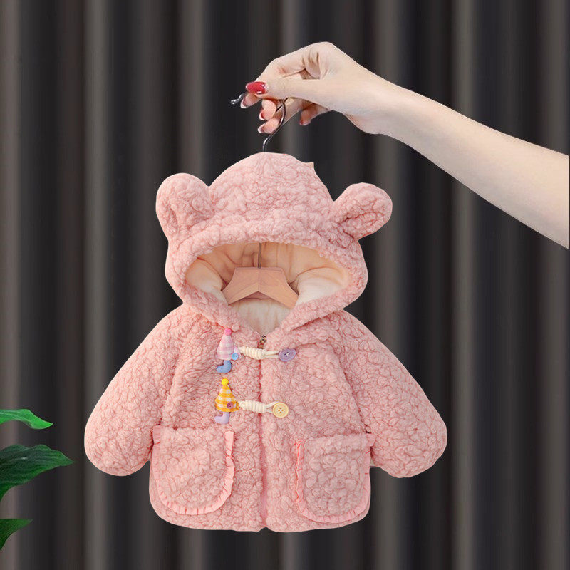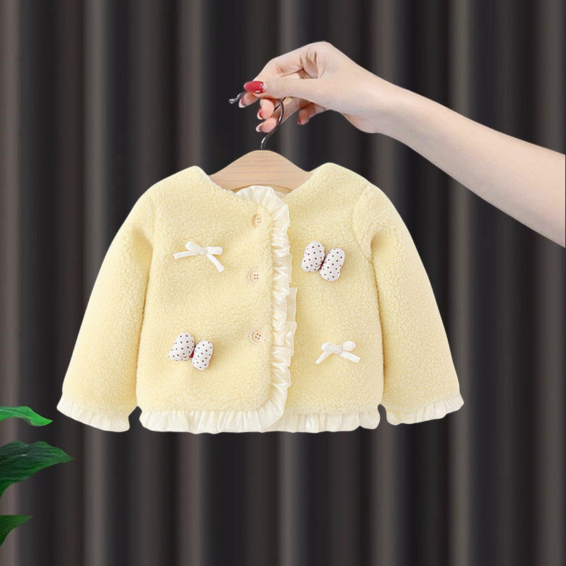 儿童棉衣女童冬装羊羔绒外套加绒加厚婴儿毛毛衣冬季宝宝棉服秋冬