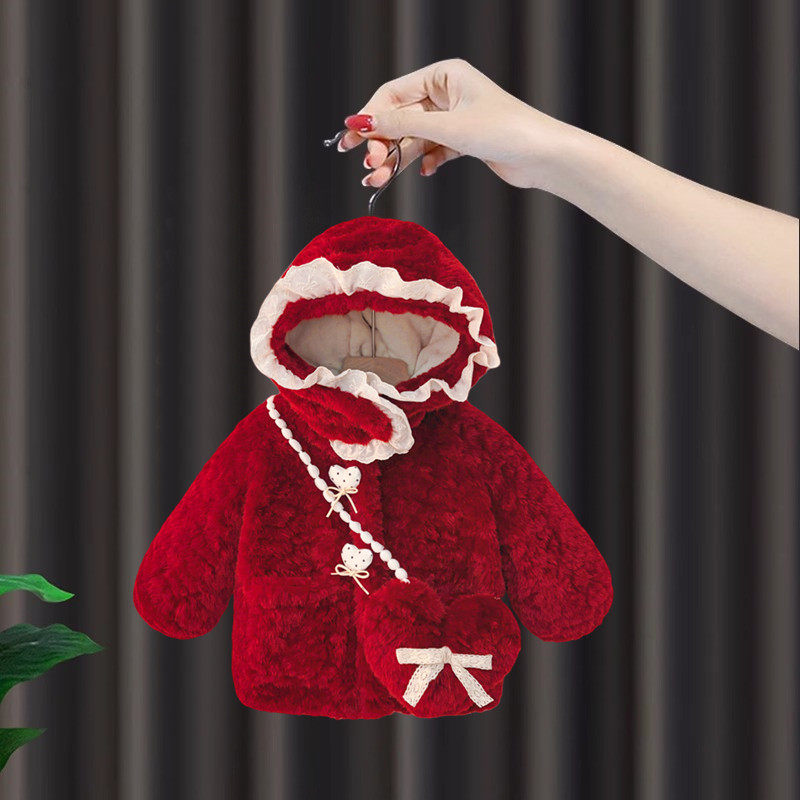 一岁女宝宝冬装外套洋气女童加绒公主毛毛衣婴儿冬季保暖毛绒上衣