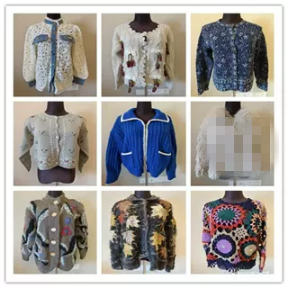古着毛衣Vintage孤品手工立体钩花粗毛线童趣少儿御寒羊毛外套B58