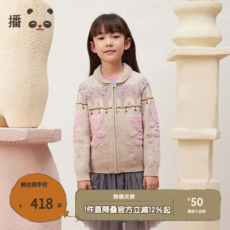 播broadcute童装2024秋季新款男女童外套童趣开衫毛衣KER4UD0087