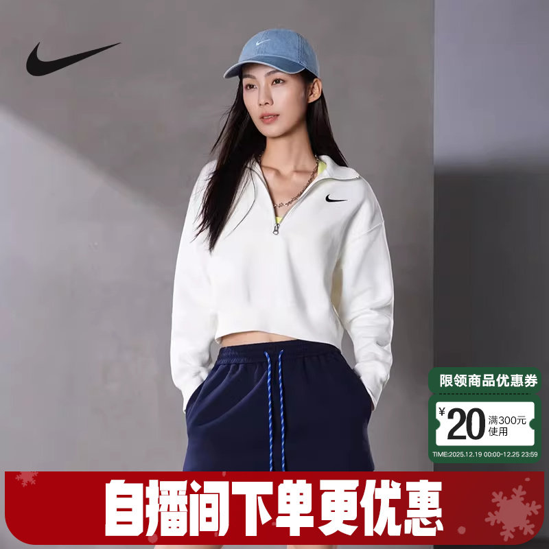 NIKE耐克卫衣女冬季半拉链短款高领加绒休闲运动套头衫DQ5768-667