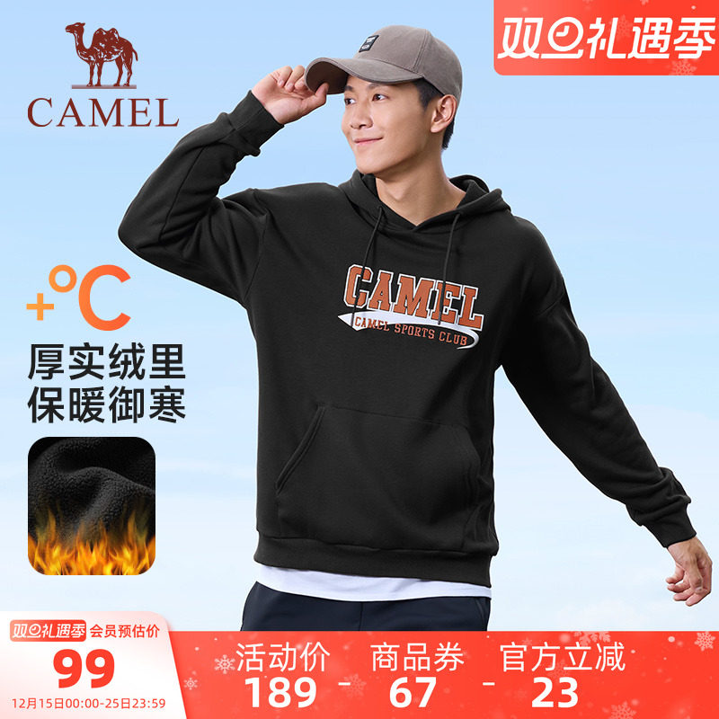 骆驼男装短款秋冬清仓运动休闲上衣男加绒套头长袖宽松连帽卫衣女