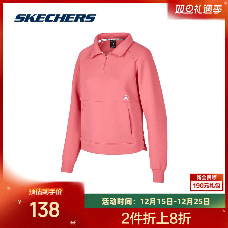 斯凯奇秋季女子运动POLO卫衣短款舒适针织套头柔软日常休闲百搭